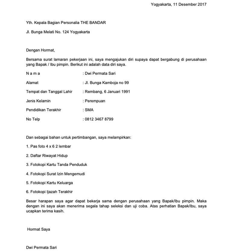 21 cara membuat surat lamaran kerja yang simpel, baik dan benar. Contoh surat lamaran kerja yang baik dan benar untuk dijadikan referensi dalam usaha mencari kerja di sebuah perusahaan sesuai dengan keahlian kamu. Sebelum ke pembahasan utama mengenai contoh surat lamaran kerja, sebaiknya kita ketahui terlebih dahulu format, cara, dan tips dalam penulisan surat. Surat lamaran kerja yang baik, benar dan menarik biasanya lebih berpeluang mendapatkan perhatian dari hrd perusahaan, sehingga peluang akan dipanggil untuk tips cara agar diterima melamar kerja di perusahaan. Surat lamaran merupakan surat permohonan yang dibuat oleh para pelamar pekerjaan atau pencari kerja, kemudian dikirimkan terhadap suatu badan usaha maupun instansi untuk mendapat pekerjaan maupun jabatan berdasarkan lowongan pekerjaan ditawarkan. Ada banyak faktor yang harus kita perhatikan. Sesuaikan dengan jenis lamaran yang akan dikirim. Membuat surat lamaran kerja memang terlihat gampang. Cara membuat tampilan surat lamaran kerja yang rapi. Demikian surat lamaran kerja ini saya buat berdasarkan kondisi saya yang sebenarnya. Saat anda membuat surat lamaran, usahakanlah agar membuat format tulisan yang benar. Dulu, surat lamaran kerja memang selalu dikirimkan lewat pos atau diantar langsung ke perusahaan/kantor. Ketika kita mulai belajar untuk bertanggung jawab dan juga belajar untuk menjadi perlu diingat saat membuat surat lamaran kerja, anda harus membuatnya secara nyata tidak ada rekayasa, semua data yang anda buat haruslah.