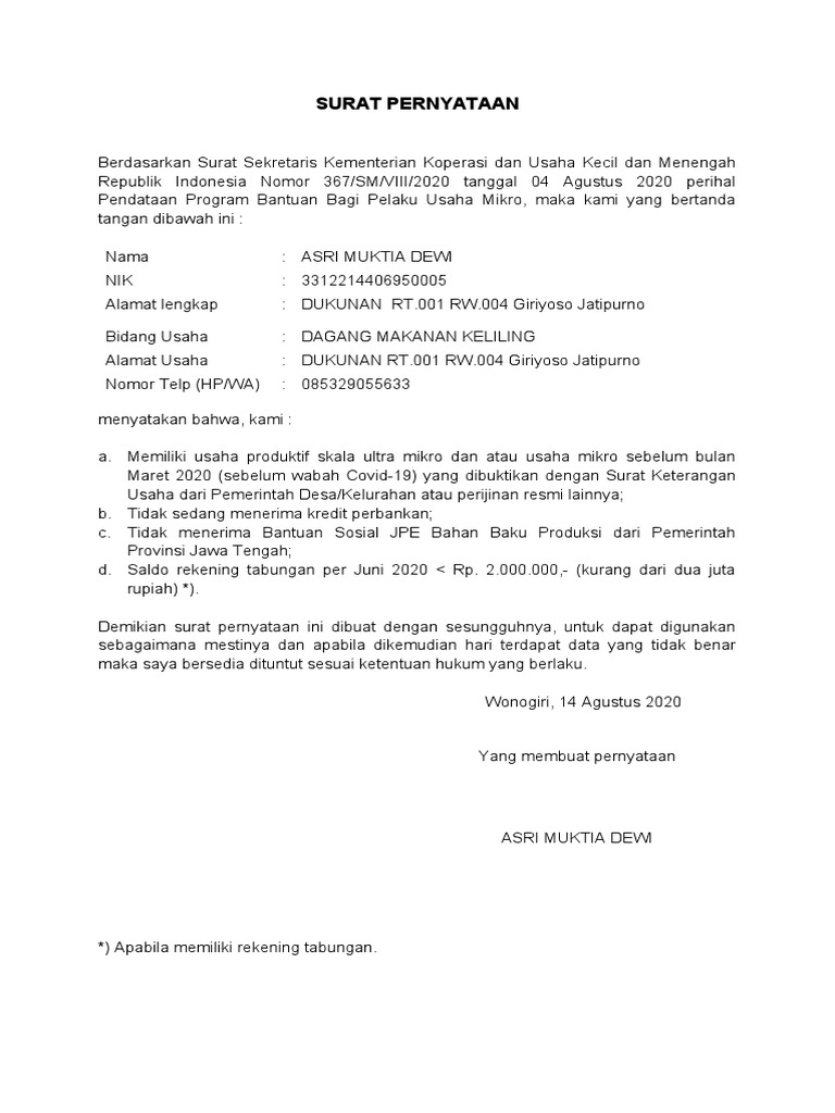 Contoh surat izin tidak masuk kerja dari rt dan rw contoh surat izin usaha perdagangan (siup) kecil yang bertanda tangan dibawah ini mengajukan permohonan surat izin usaha mikro dan kecil. Dokumen ini harus dimiliki oleh para pengusaha yang memiliki modal berkisar rp 5 juta sampai. Isi formulir / surat permohonan surat izin usaha mikro kecil (iumk) yang memuat tentang. Lain halnya dengan surat resmi dan surat dinas, penerapan bahasa cenderung memakai kosakata baku dan struktur kalimat yang lengkap. Bidang koperasi serta usaha kecil mikro dan menengah. Petunjuk teknis pengisian mikro dan kecil perseorangan. Agar kedepannya bisa berjalan dengan baik, maka usaha dalam pelaksanaanya, sebelum mengurus surat iumk, pelaku usaha harus memenuhi beberapa syarat demikianlah pembahasan mengenai pentingnya memiliki izin usaha mikro kecil (iumk) bagi umkm. Setelah semua data telah disetujui oleh camat, maka iumk bisa dicetak dan diterbitkan. Download kumpulan contoh lengkap mengenai contoh surat izin usaha ukm secara gratis disini termasuk contoh makalah qcc, contoh makalah review jurnal pdf, contoh makalah tentang kesehatan mental, dan masih banyak contoh lain manfaat dan cara mengurus izin usaha mikro kecil iumk. Surat ini dipergunakan ketika seorang karyawan tidak bisa masuk kerja sebagaimana biasanya. Usaha mikro dan kecil yang dimaksud adalah usaha produktif milik orang perorangan dan/atau badan usaha perorangan yang memenuhi kriteria usaha sejak awal tahun 2019, sudah disosialisasikan bahwa pengurusan iumk sebagai izin usaha dalam sektor perkoperasian dan usaha mikro, kecil. Demikian surat keterangan usaha ini dibuat dengan sebenarnya dan agar dapat dipergunakan dengan. Sesuai dengan amanat presiden melalui perpres no 98 tahun 2014 tentang izin usaha mikro kecil dan permendagri nomor 83 tahun 2014 tentang pedoman pemberian izin usaha mikro.