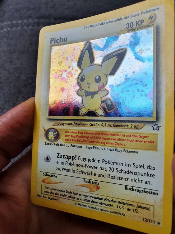 Pichu Karte : Pichu Karte Ebay Kleinanzeigen : Walking / grass day 5% initial:. Despite his size, he packs a very big punch, often using electricity with his melee attacks. 5 out of 5 stars (141) $ 9.00. Alternativ haben sie die möglichkeit mit überweisung zu zahlen. It evolves into pikachu when fed 25 candies and its final evolution is raichu. Pichu cards listed with a blue background are only legal to use in the current expanded format.